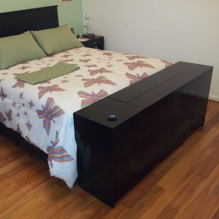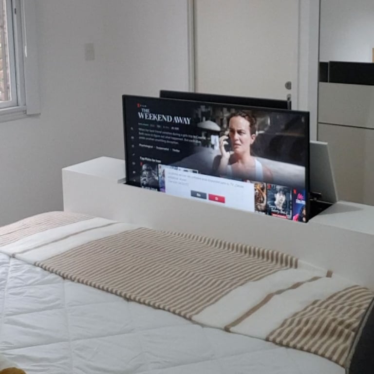 ¿Tenés un ventanal que no querés tapar o un placard que te impide colgar la TV? Nuestros muebles a medida con elevador motorizado son la solución definitiva. Fabricados con terminaciones premium, permiten que la tecnología aparezca solo cuando la necesitás, manteniendo la armonía y el orden de tu habitación.